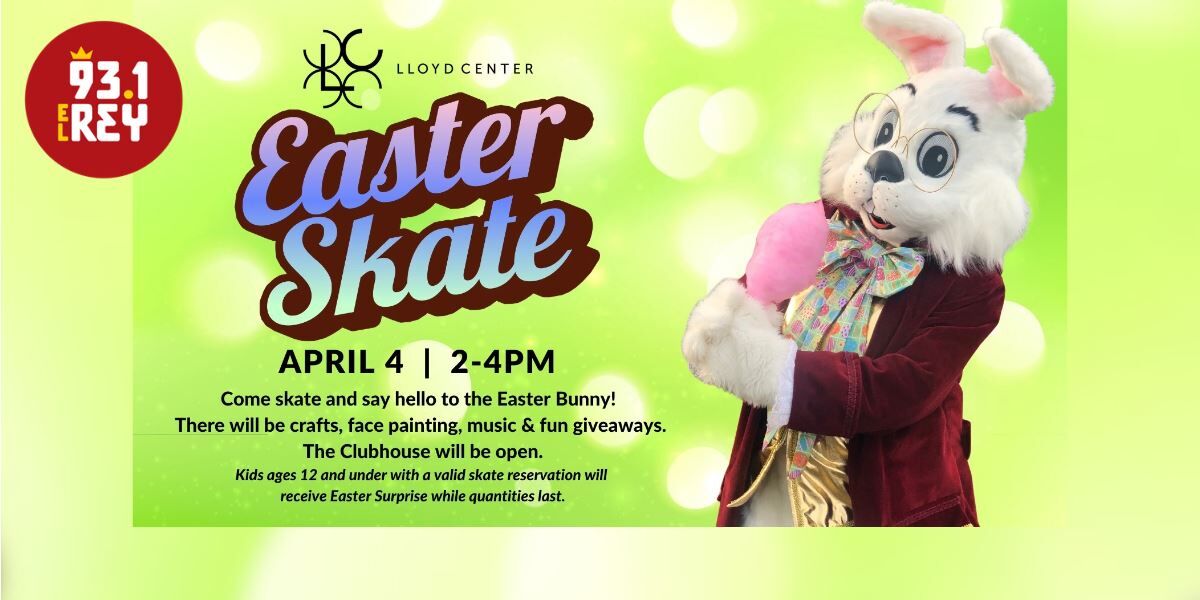 ¡La fiesta de Pascua más divertida de Portland ya está aquí! Acompáñanos este sábado 4 de abril de 2 a 4 de la tarde en el Lloyd Center Ice Rink para celebrar con el Conejito de Pascua junto al equipo de El Rey.